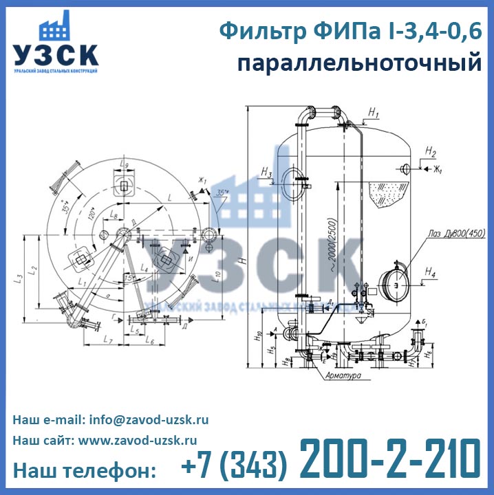 Производитель фильтров ФИПа параллельно-точных завод УЗСК предлагает два варианта комплектации ФИПаI 3,4-0,6 в Токмаке: